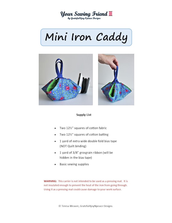 Pdf Pattern For Padded Travel Mini Iron Caddy Carrier Easy Etsy